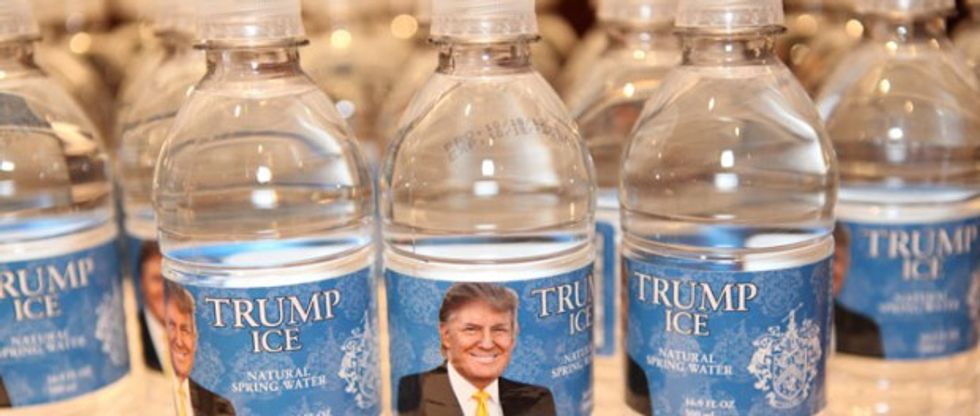 Trump Ice, a natural spring water, is available for purchase inside Trump Tower in New York City. Additionally, the company's website says the water is "proudly served at Trump Hotels, Restaurants and golf clubs worldwide."