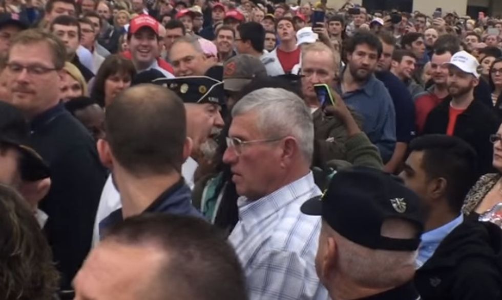 U.S. Veteran apologized after shoving and yelling at a black protester at a Donald Trump rally in Kentucky last week. (Image source: YouTube)