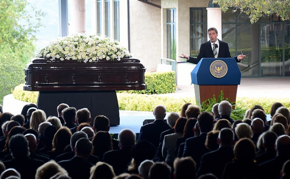 Ronald Prescott Reagan speaks about his mother, former US First Lady Nancy Reagan, during her funeral service on March 11, 2016 at the Ronald Reagan Prsidential Library in Simi Valley, California. (FREDERIC J. BROWN/AFP/Getty Images)