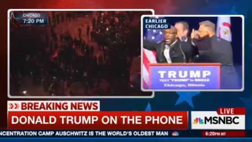 Republican front-runner Donald Trump phoned into MSNBC Friday night to react to the violence that erupted between protesters and supporters at a Chicago arena where he had scheduled a rally.