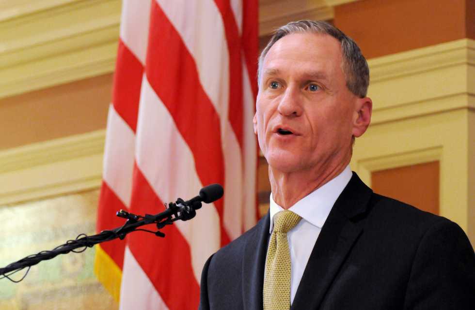 In this Jan. 12, 2016 file photo, South Dakota Gov. Dennis Daugaard delivers his during his annual state of the state address at the state Capitol in Pierre. (AP Photo/James Nord, File)