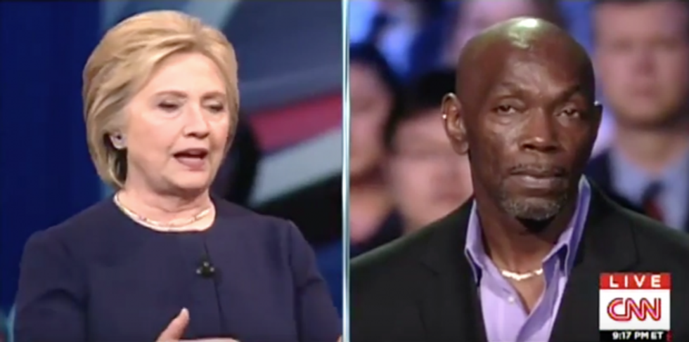 Democratic presidential candidate Hillary Clinton was confronted by a man who spent 39 years in jail for a murder he didn't commit over her support for the death penalty at a Democratic presidential town hall on Sunday.