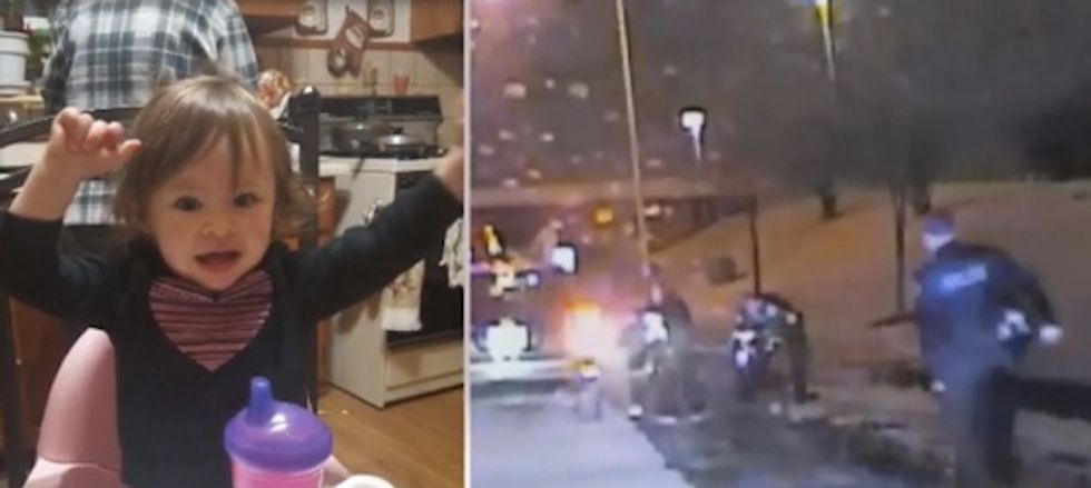 The dash cam video, released on Monday, shows Schaumburg officer Bryan Poradizisz running towards the lifeless body of 18-month-old Aureliana Colon on the side of the road where her grandmother stood sobbing.