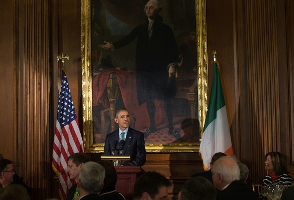 President Barack Obama addresses the annual Friends of Ireland Luncheon at the US Capitol in Washington, DC, on March 15, 2016. (NICHOLAS KAMM/AFP/Getty Images)