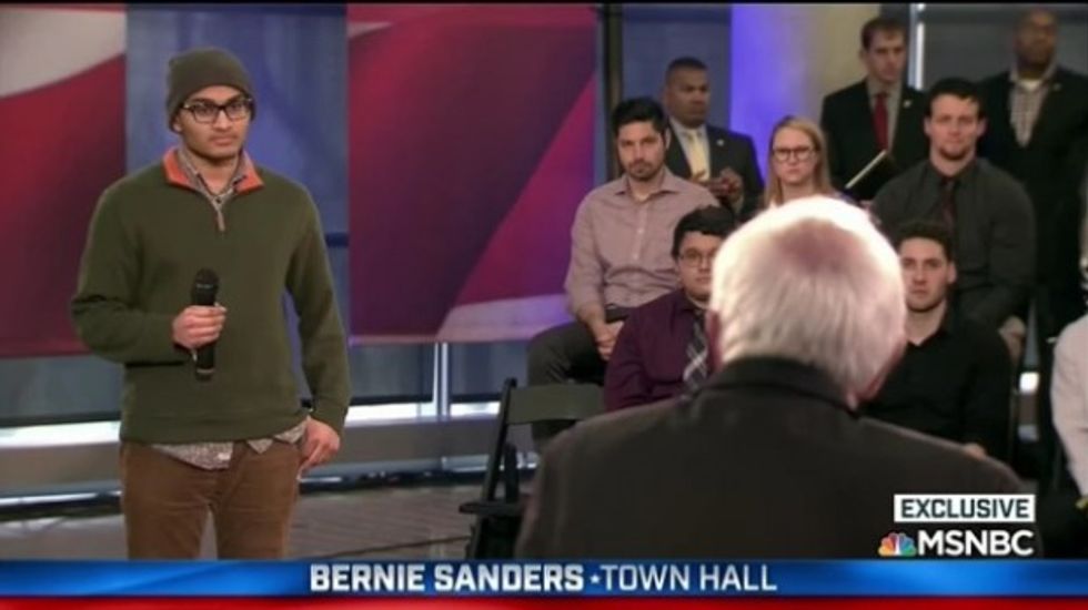 Democratic presidential candidate Sen. Bernie Sanders (Vt.) had an awkward encounter during an MSNBC town hall when he assumed that an attendee who asked him a question was Muslim.
