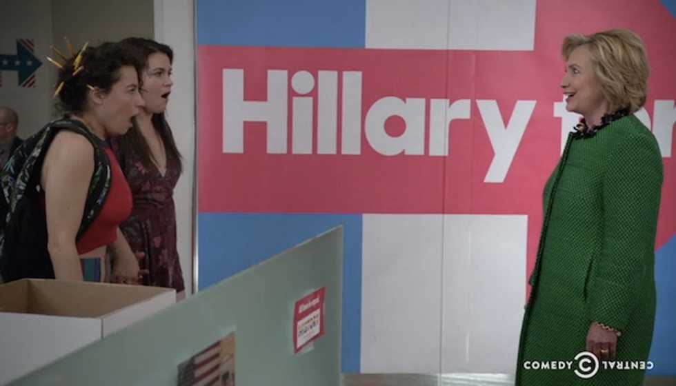 Hillary Clinton will make a cameo appearance on Comedy Central's edgy series, "Broad City" just a day after scoring decisive wins in three of the five Democratic primary states, pushing her delegate total closer to the magic number needed to secure the nomination.