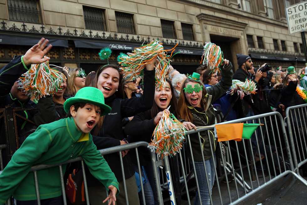 People cheer during the annual St. Patrick's Day parade Thursday in New York City. (Spencer Platt/Getty Images)