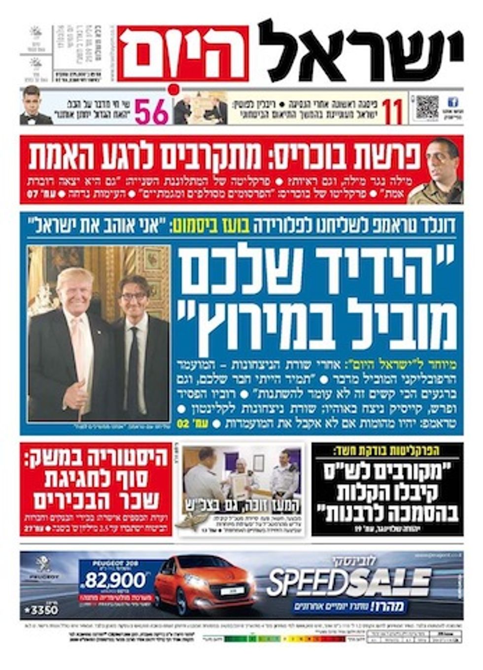 Israel Hayom is owned by businessman and major Republican donor Sheldon Adelson.