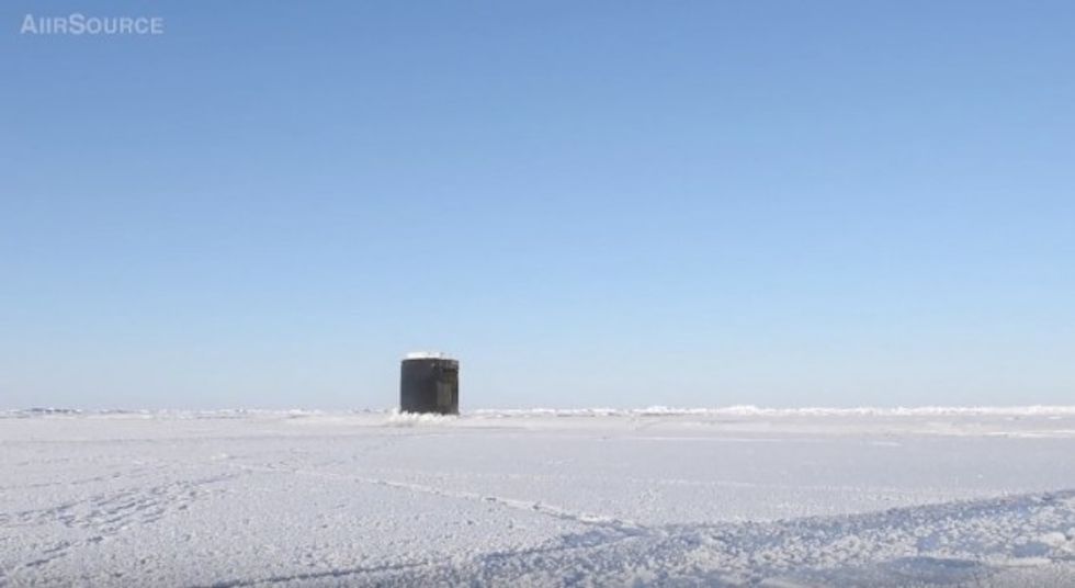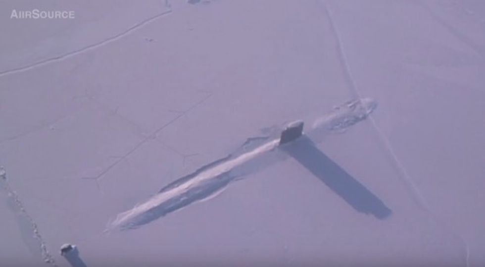 A video posted online Friday captured a nuclear submarine break through several feet of solid ice to surface in the Arctic Circle.