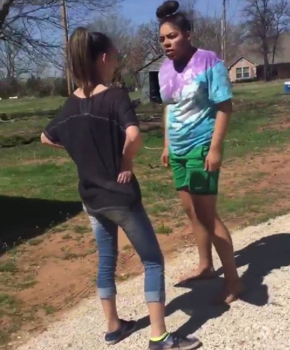 It seems clear from the clip that the two featured females � one black, one white � facing off on a gravel driveway are acquainted with each other.