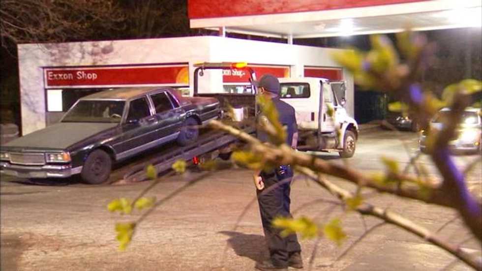 Raheem Scott, 25, was inside an Exxon gas station in Atlanta on Saturday buying oil when he looked outside and saw 50-year-old William Blackwell allegedly get into the driver seat. An unidentified woman also got in on the passenger side, the Atlanta Journal-Constitution reported. That's when Scott ran outside to stop him.