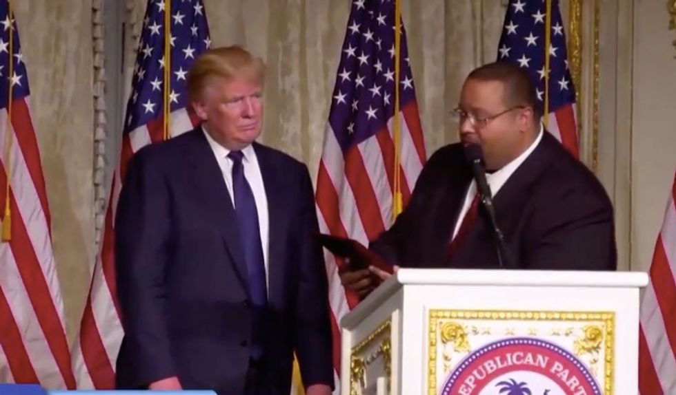 Captured Sunday at Trump's Mar-a-Lago estate, the odd event happened after the Palm Beach County Republicans gave Trump an award for "Making America Great Again."