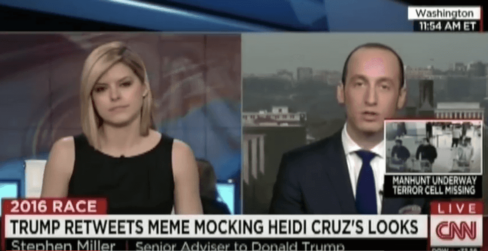 CNN anchor Kate Bolduan grilled a senior policy adviser to Donald Trump Thursday over the Republican presidential candidate's recent Twitter feud with Texas Sen. Ted Cruz regarding their wives.