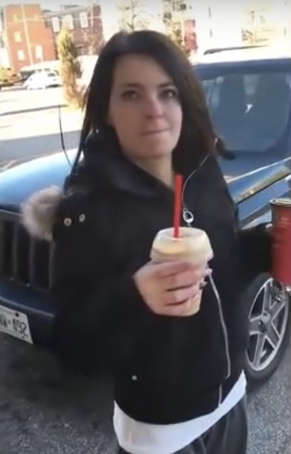 So as a woman exited a Tim Hortons coffee shop apparently in Toronto and headed toward the vehicle in question, Ryan Favro hit record on his cellphone camera.