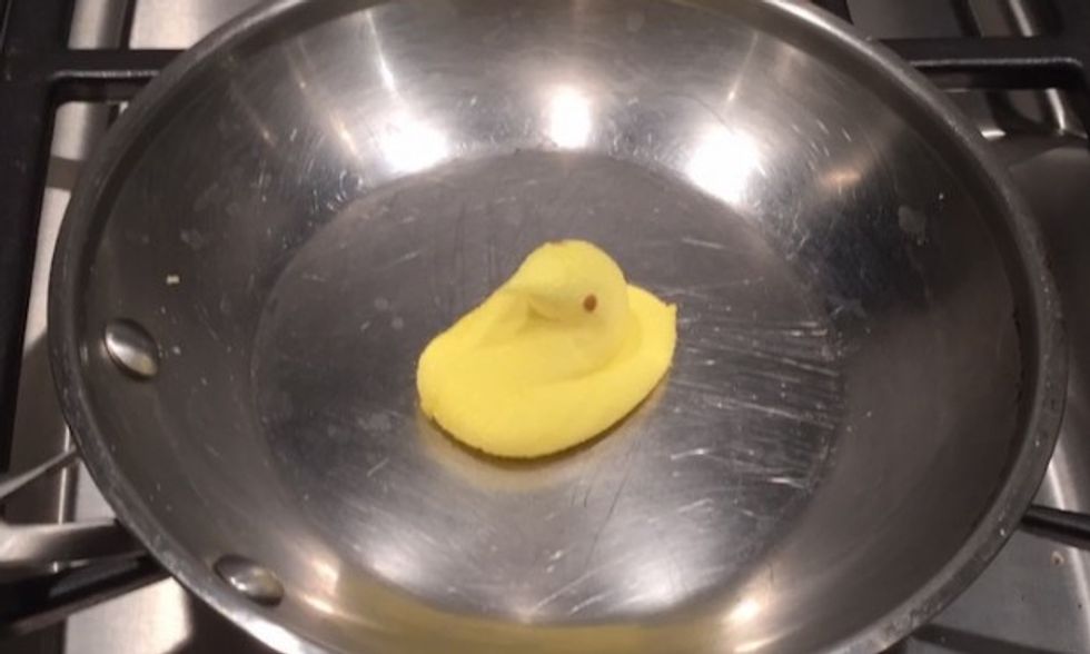 This year, we decided to see what happens when you put a marshmallow Peep in a hot frying pan.