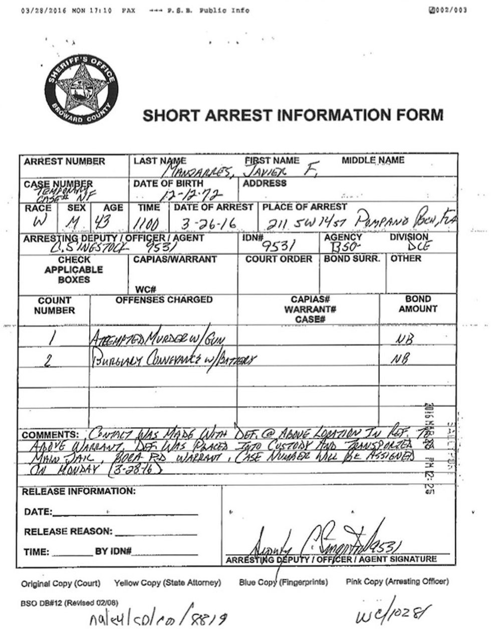As Florida blogger Peter Schorsch noted, Manjarres had previous run-ins with law enforcement. It was reported that he was arrested in 1995 for burglary with assault.