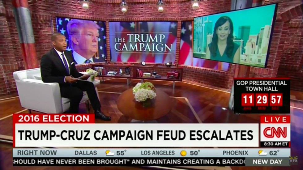 CNN host Don Lemon discusses the feud between Cruz and Trump with Katrina Pierson on New Day Tuesday, March 29. (Image: YouTube/CNN)