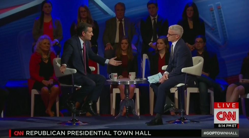 CNN host Anderson Cooper pushed back Tuesday night when Sen. Ted Cruz (R-Texas) criticized the news media for giving countless hours of "free media" to Donald Trump.