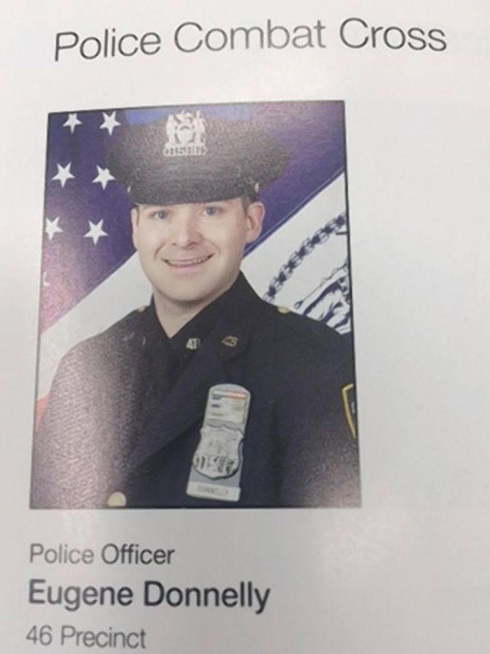The alleged attack took place hours after New York Mayor Bill de Blasio presented Officer Donnelly with the Police Combat Cross -- the NYPD’s second-highest honor -- for arresting a teen gunman after a brutal Bronx gunfight in May 2012, the Daily News reported.
