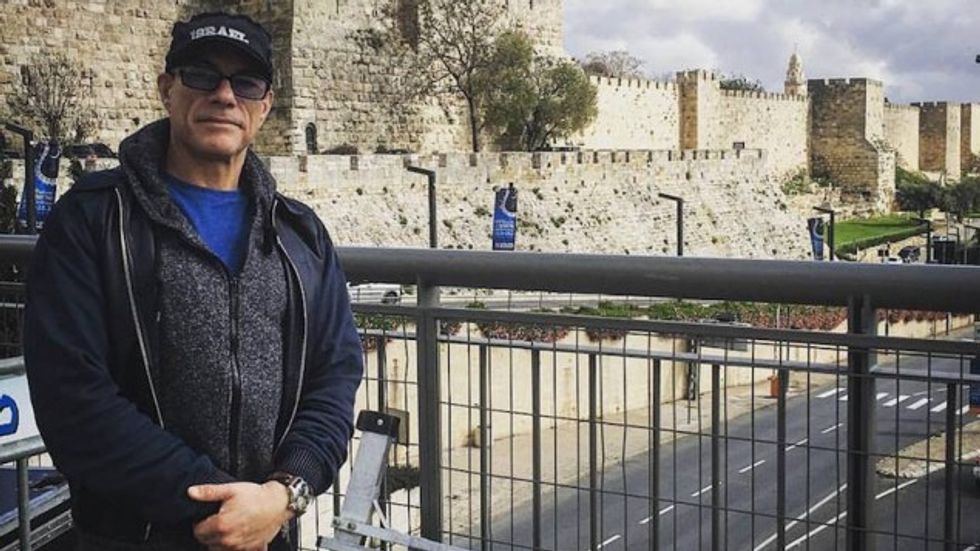 Van Damme posted a Facebook status update Tuesday with a photo of him overlooking Jerusalem’s Old City wearing a cap printed with the word “Israel.” Those who saw the original message reported that he wrote, “Shalom from Jerusalem, Israel!”