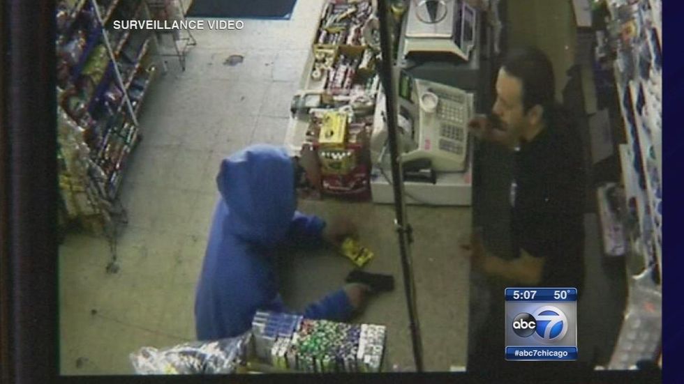 That's when the quick-thinking clerk reached for his own gun, resulting in the would-be teenage robber running out of the store. WLS-TV reported another teenager also ran out of the store.