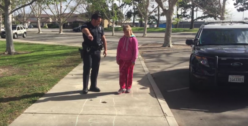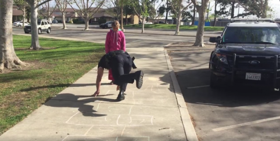 Huntingdon Beach Police Officers Zach Pricer and Scott Marsh were out responding to a March 30 call describing reports of a suspicious vehicle, according to USA Today. When the officers arrived at the scene, they discovered that homeless girl and her mother were living in the car because they had no other place to go. While Marsh was busy arranging for housing for the mother and daughter through calling the department's homeless task force, Pricer, 38, decided to try his hand at brightening up the 11-year-old girl's day by teaching her how to play hopscotch.