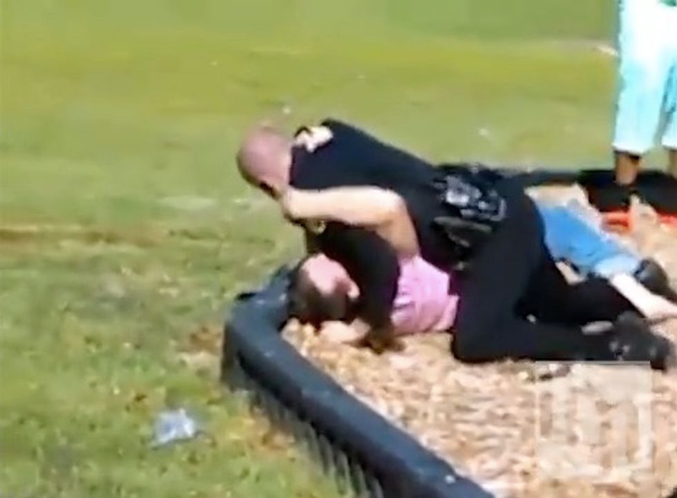 A Georgia police officer received some unexpected resistance when responding to a bizarre incident at a park over the weekend.