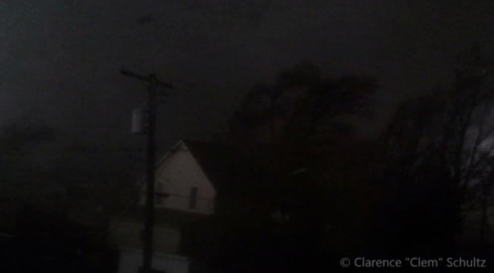 Clem Schultz, 85, was inside his Fairdale, Illinois home with his wife of 25 years, Geri, when a tornado passed through on April 9, 2015. Expecting that the electricity would go out, and not much else, Schultz climbed the stairs grab some lanterns from an upstairs bedroom, and while he was upstairs, he decided to film the tornado's passing from the window, according to the Daily Herald.
