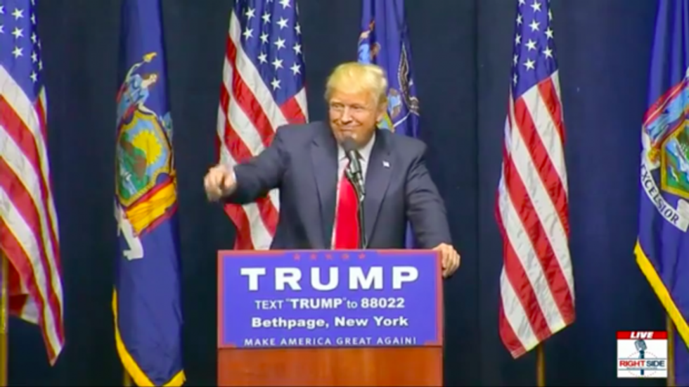 Donald Trump holds first New York rally in Bethpage Wednesday, April 6. (Image: YouTube/Right Side Broadcasting)