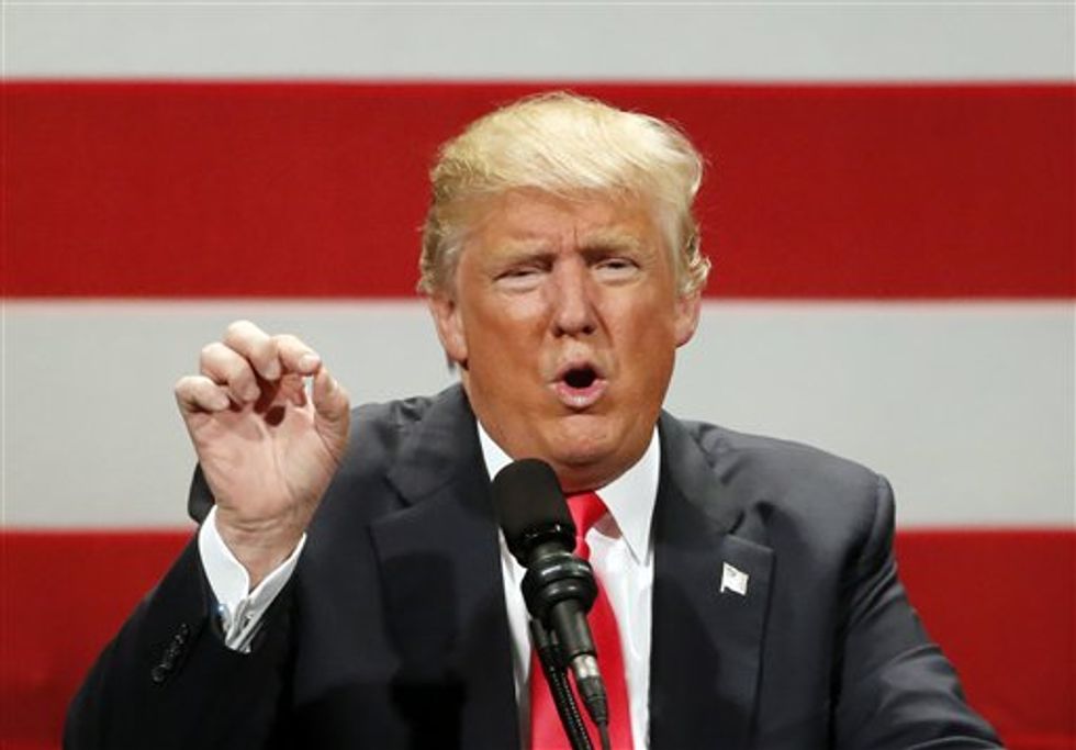 Republican presidential candidate Donald Trump speaks at a rally at the Milwaukee Theatre Monday, April 4, 2016, in Milwaukee. (AP Photo/Charles Rex Arbogast)