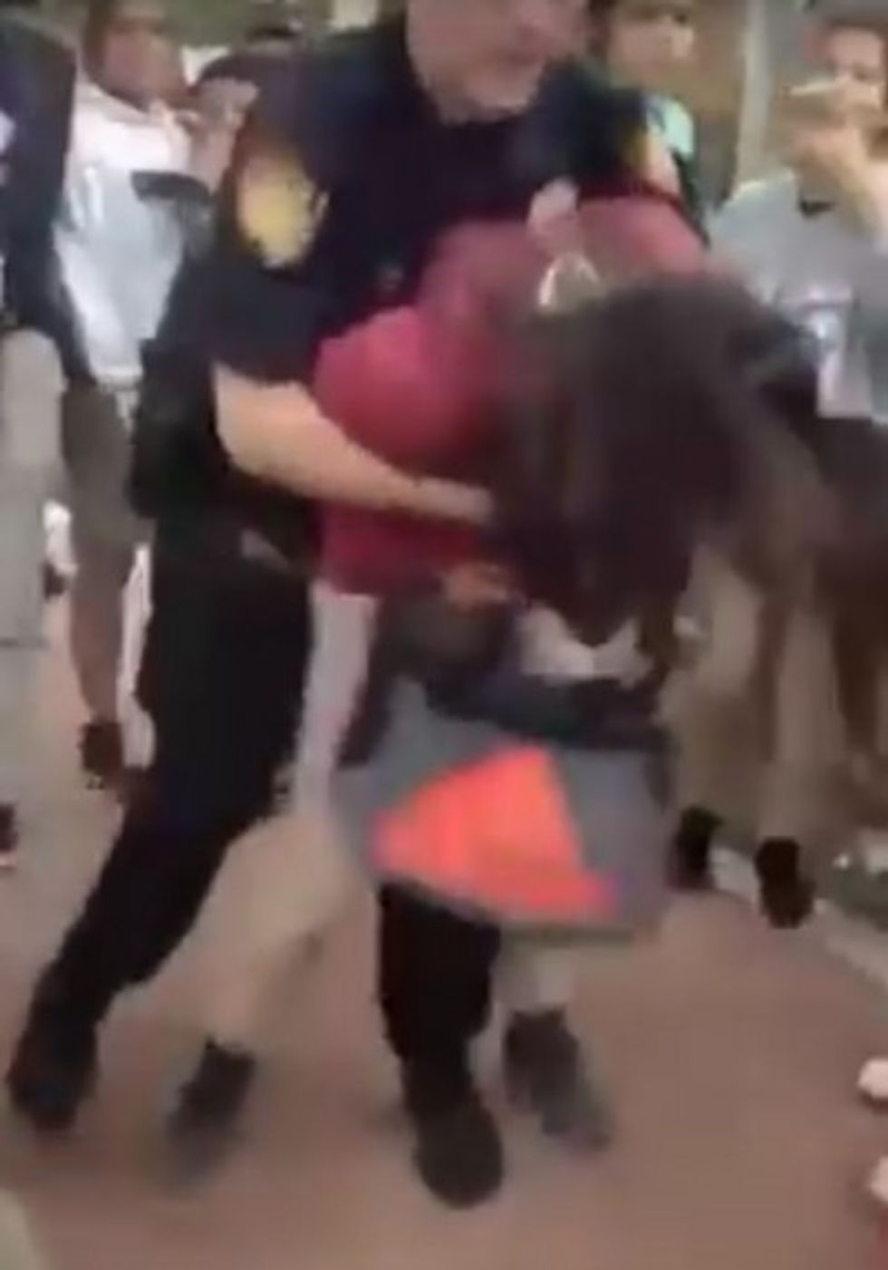 The 33-second clip showed Officer Joshua Kehm holding sixth-grader Janissa Valdez from behind, then lifting her up and throwing her to the walkway as a large group of Rhodes Middle School students circled around the pair and yelled.