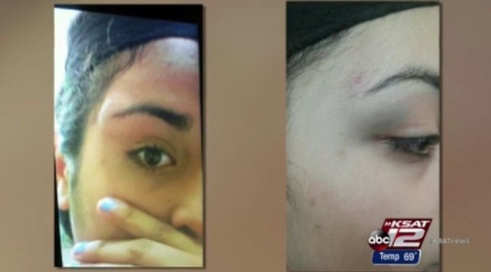Valdez received a swollen bruise near her right eye, KSAT said.