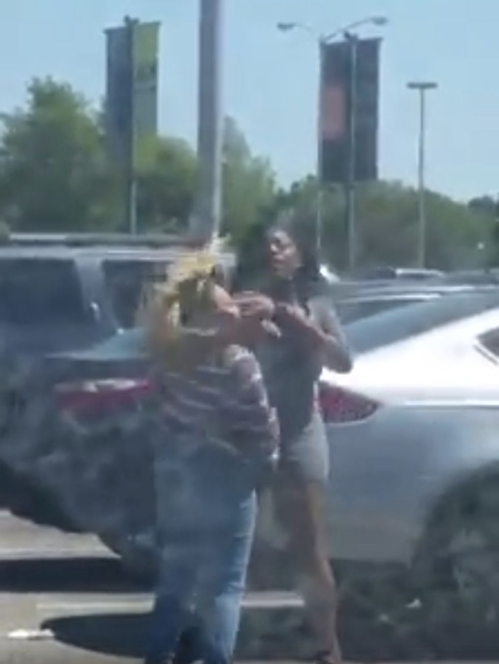 "The lady tried to pull in and that's when the lady walked up and hit her car," she added to the station. "Then the lady jumps out of her car and they started going at it."