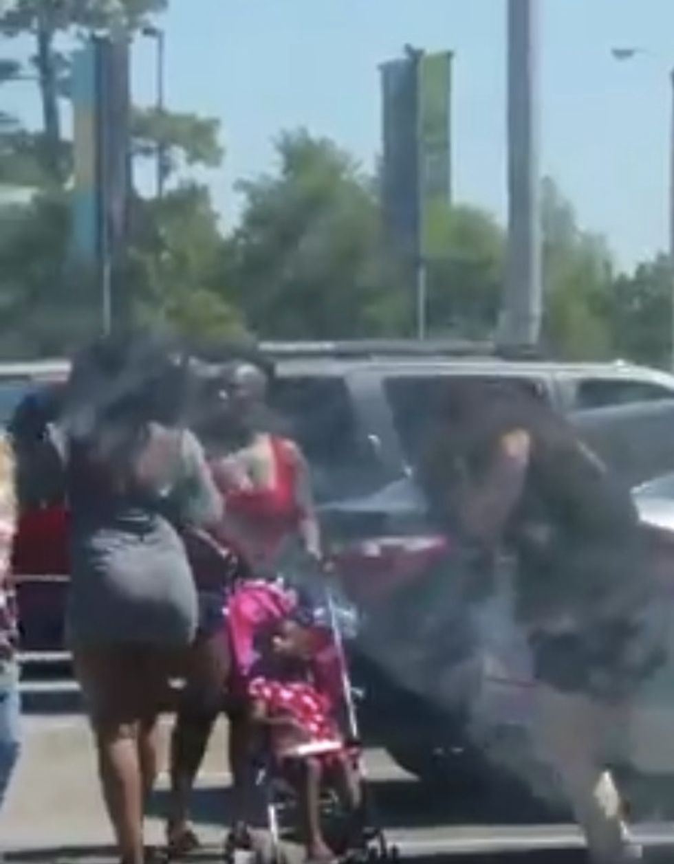 To top it off, KTRK reported that several children witnessed the fighting — one woman was seen pushing an occupied stroller right through the battle.