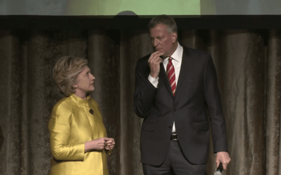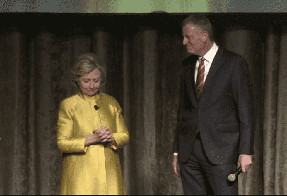 But Clinton seemed to take it all in good stride when she confronted de Blasio about her mishap.