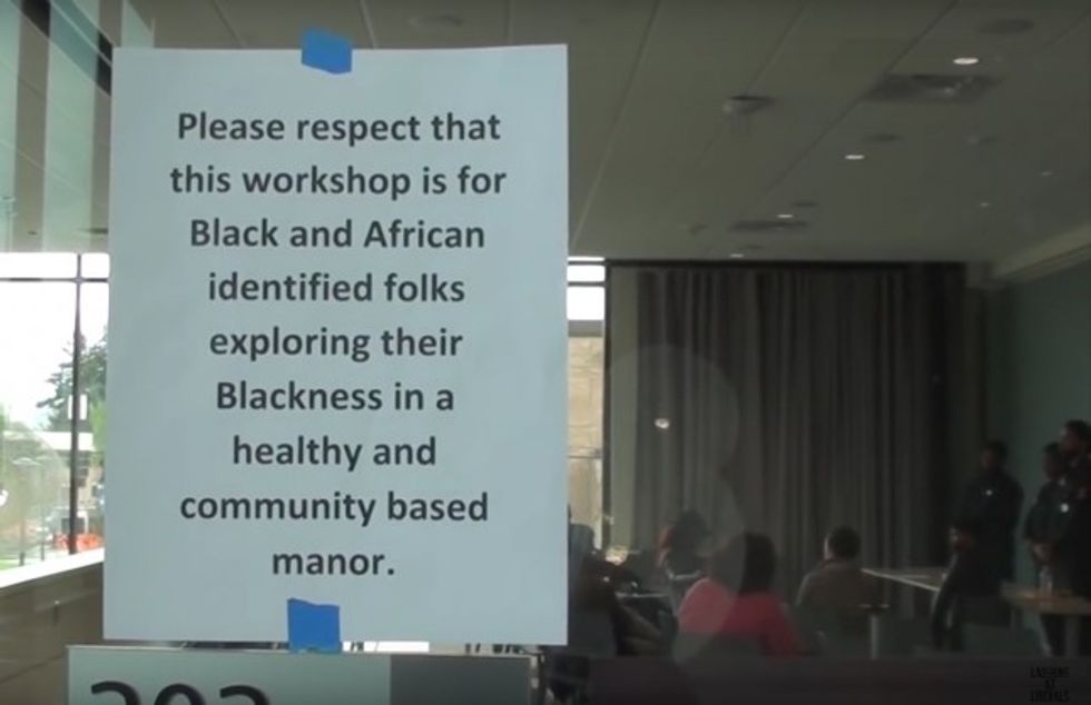 After a white woman told an independent videographer she was kicked out of a public meeting "for black and African identified folks" at an Oregon college last week, the videographer returned to the scene to investigate — and his camera was rolling.