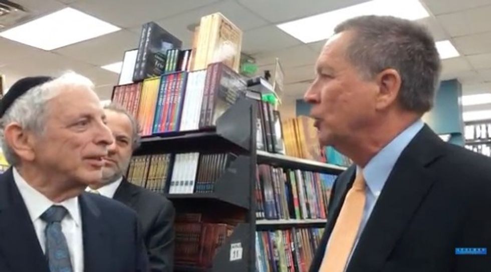 While campaigning in Brooklyn ahead of the New York's April 19 primary, Republican presidential candidate Ohio Gov. John Kasich tried to explain the biblical story of Joseph to Jewish scholars.