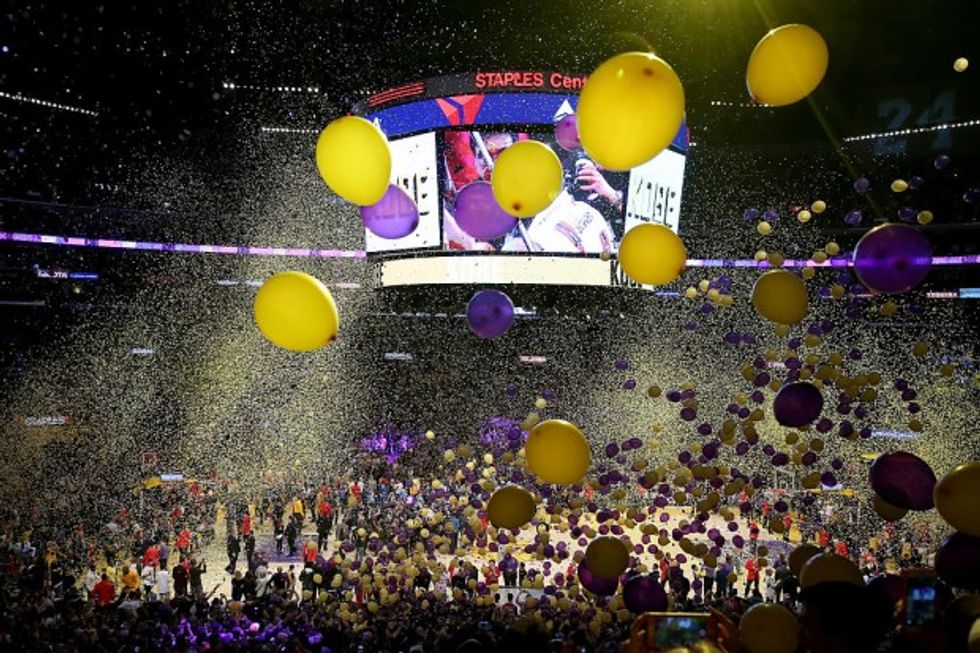 It was daylong tribute with thousands of fans thronging the downtown streets around Staples Center and chanting his name from early afternoon. Fans lucky enough to get inside Staples Center greeted him with ovations at every opportunity. Magic Johnson anchored a brief pregame tribute by calling Bryant "the biggest and greatest celebrity we've had in this town for 20 years" and "the greatest to wear the purple and gold."