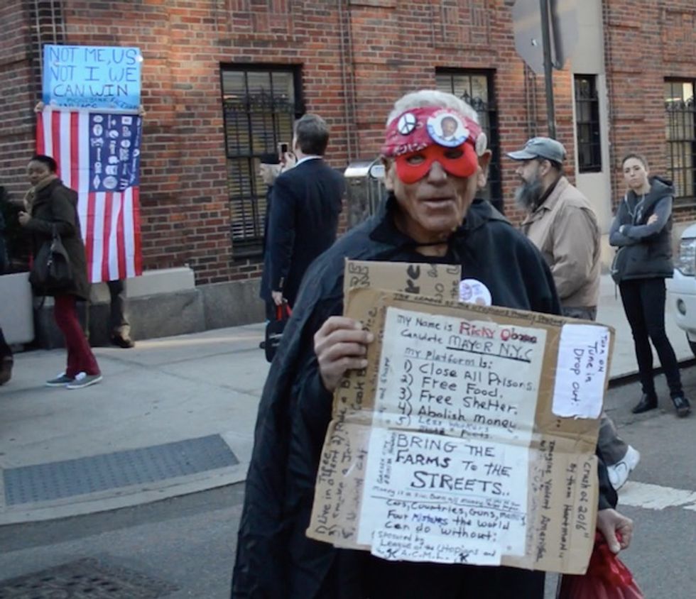Outside the rally, navigating the security gauntlet, I met “Ricky Obama,” candidate for mayor of NYC.