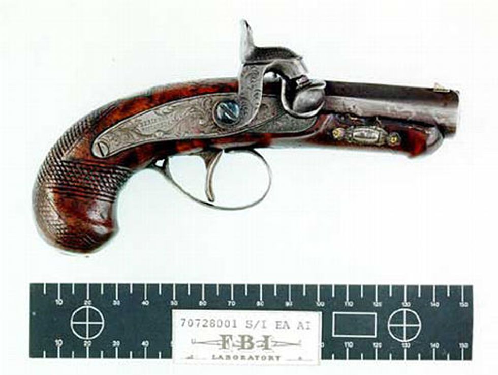 This is the Deringer pistol that was recovered from the state box at the Ford Theater and used by John Wilkes Booth to assassinate President Abraham Lincoln in 1865. (AP Photo/FBI)