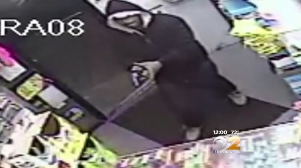A convenience store clerk was working Sunday evening when two suspects barged into his family-owned Brooklyn shop and robbed him at gunpoint, WCBS-TV reported.