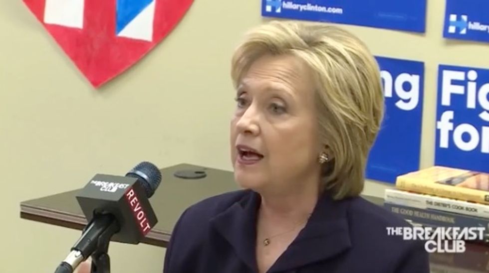 One of the show's other two hosts, Charlamagne Tha God, countered Clinton's comment by informing her that many black people might think she's merely pandering to them with her answer.