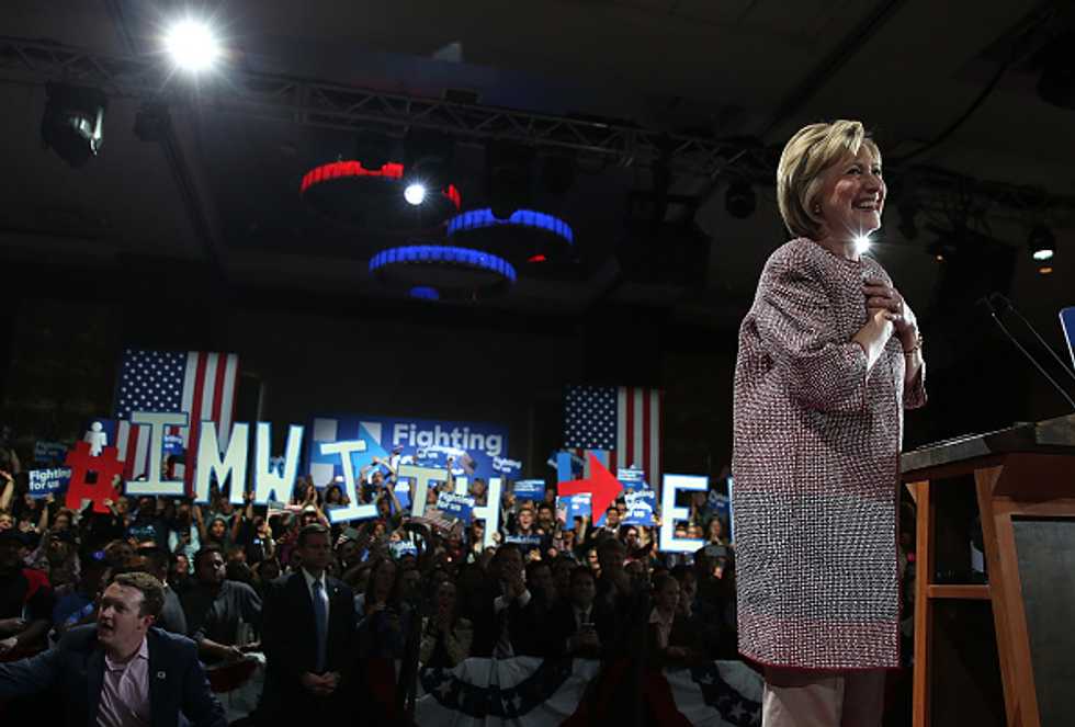 "We started this race not far from here on Roosevelt Island. And tonight, a little less than a year later, the race for the Democratic nomination is in the homestretch and victory is in sight," Clinton said.