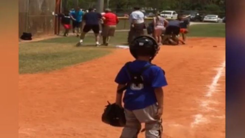A baseball brawl broke out on a Little League field in Florida — but it wasn't the players who had to be pulled apart.