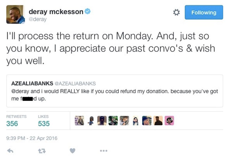 Banks became so frustrated with Mckesson that, finally, she decided she wanted a refund on the donation she made to his mayoral campaign.