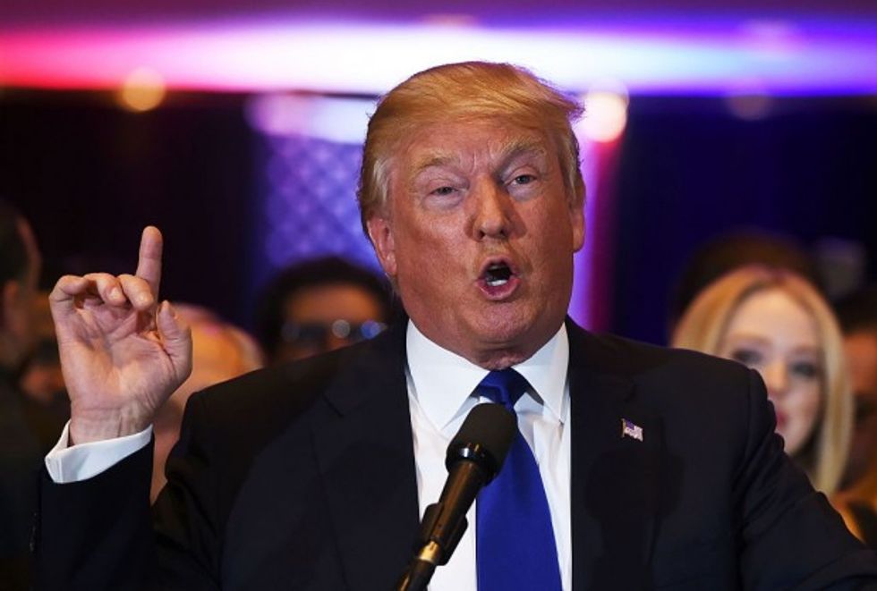 Republican presidential candidate Donald Trump speaks at a rally at the Milwaukee Theatre Monday, April 4, 2016, in Milwaukee. (AP Photo/Charles Rex Arbogast)