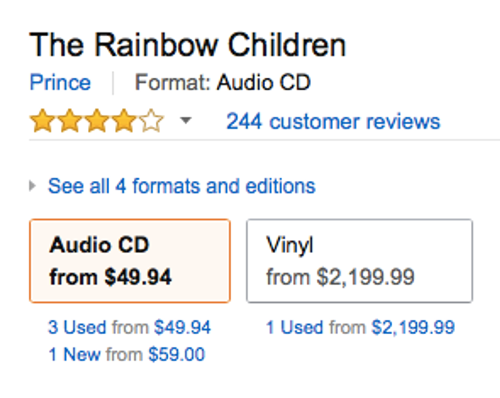 How much money, you ask? A vinyl copy of Prince's 2001 album, "The Rainbow Children" can be purchased for more than $2,000. A C.D. copy can be had for less than $50.