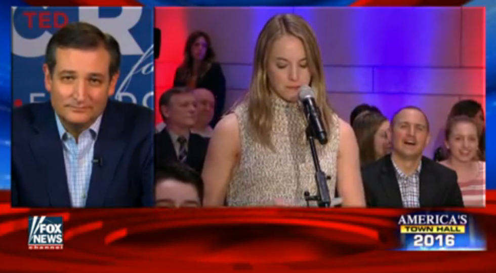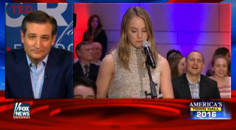 After being interrupted by boos multiple times, the woman got an answer from Cruz.