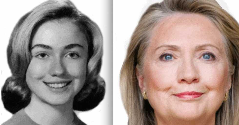 The images specifically show how each of the five remaining presidential candidates — Donald Trump, John Kasich, Hillary Clinton, Ted Cruz and Bernie Sanders (in that order) — has transformed over the past few decades.