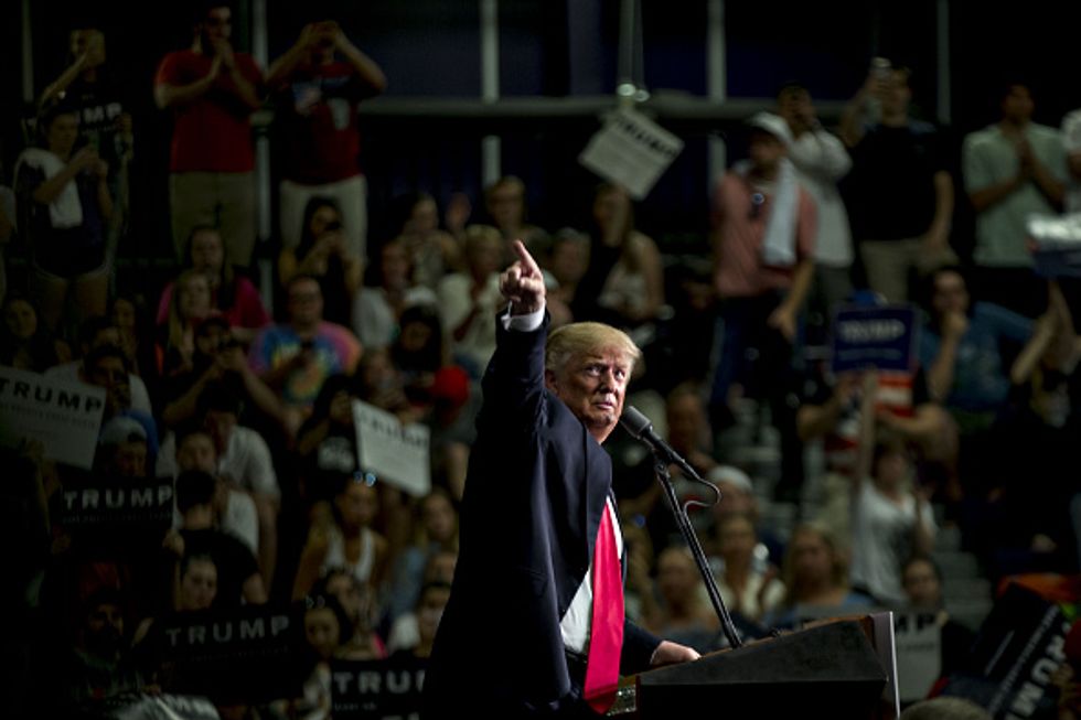 Republican presidential candidate Donald Trump speaks to supporters and the media at Trump Towers following the conclusion of primaries Tuesday in northeastern states on April 26, 2016 in New York, New York. Trump again gained more delegates to move him closer to the Republican presidential nomination. (Getty Images/Spencer Platt)